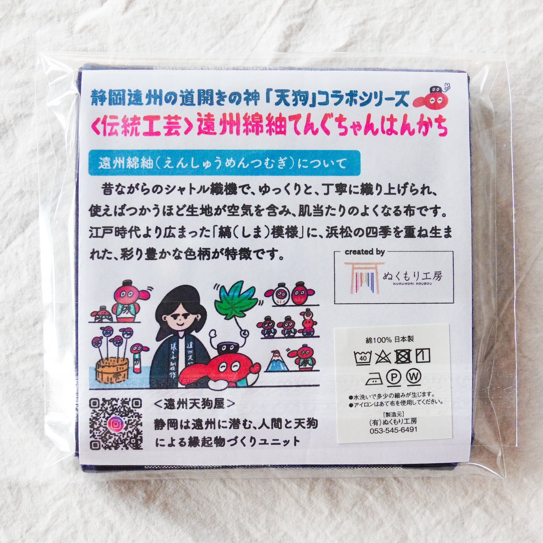 遠州綿紬ぬくもり工房さんとのコラボハンカチです。