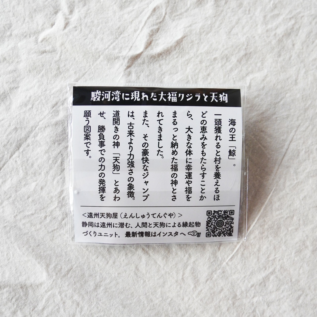 海の王「鯨」。一頭獲れると村を養えるほどの恵みをもたらすことから、大きな体に幸運や福をまるっと納めた福の神とされてきました。
