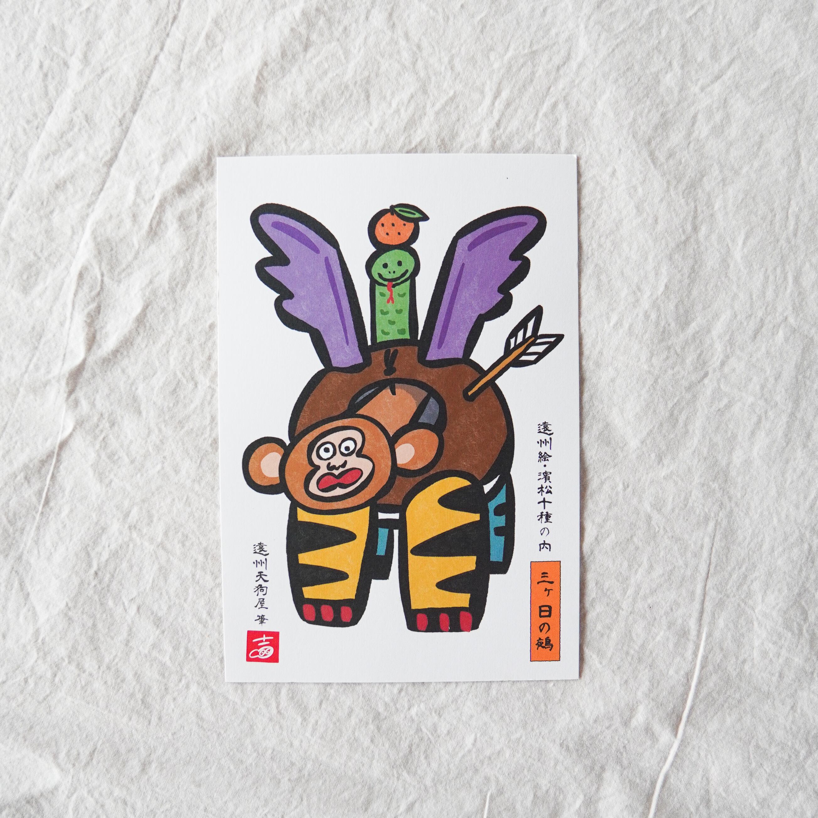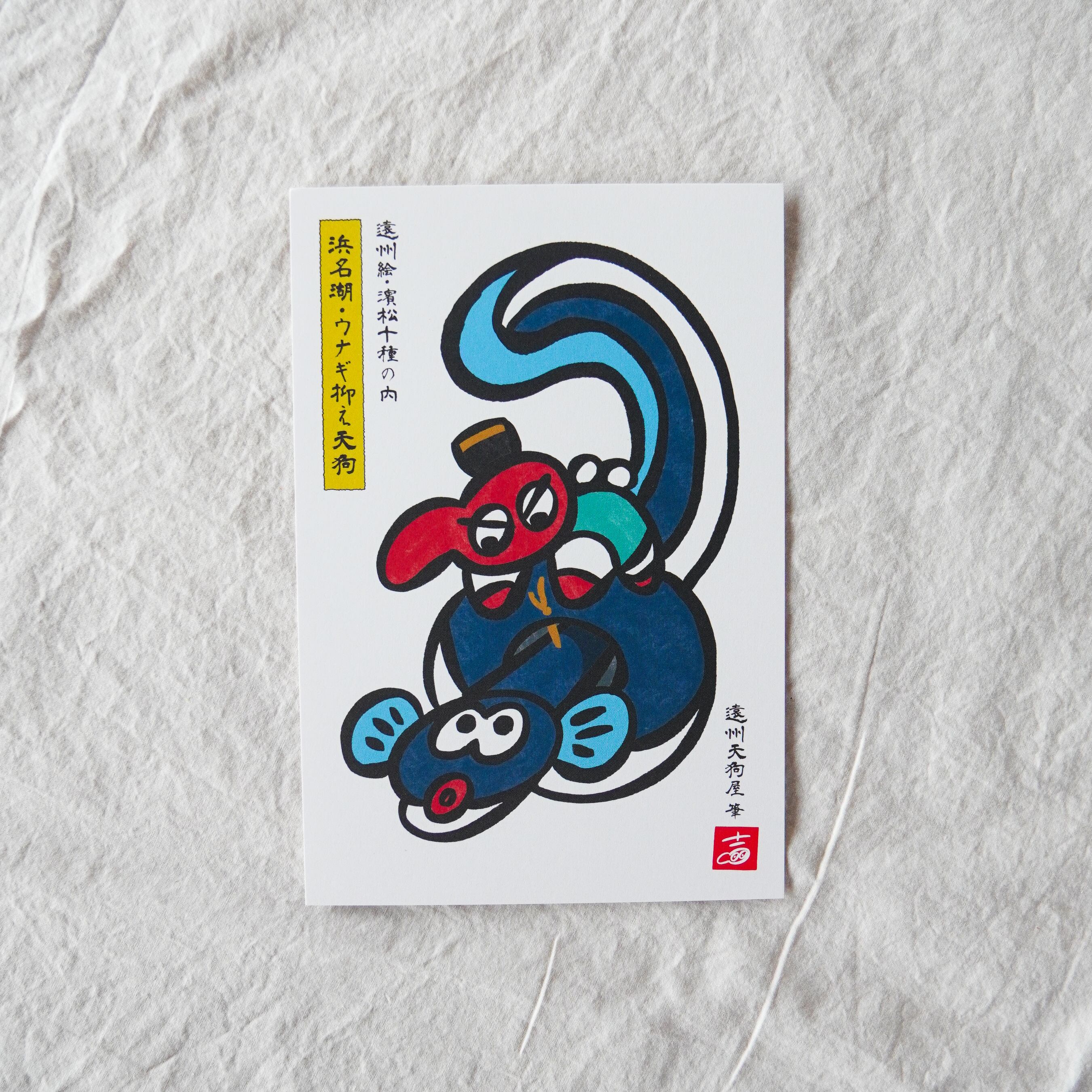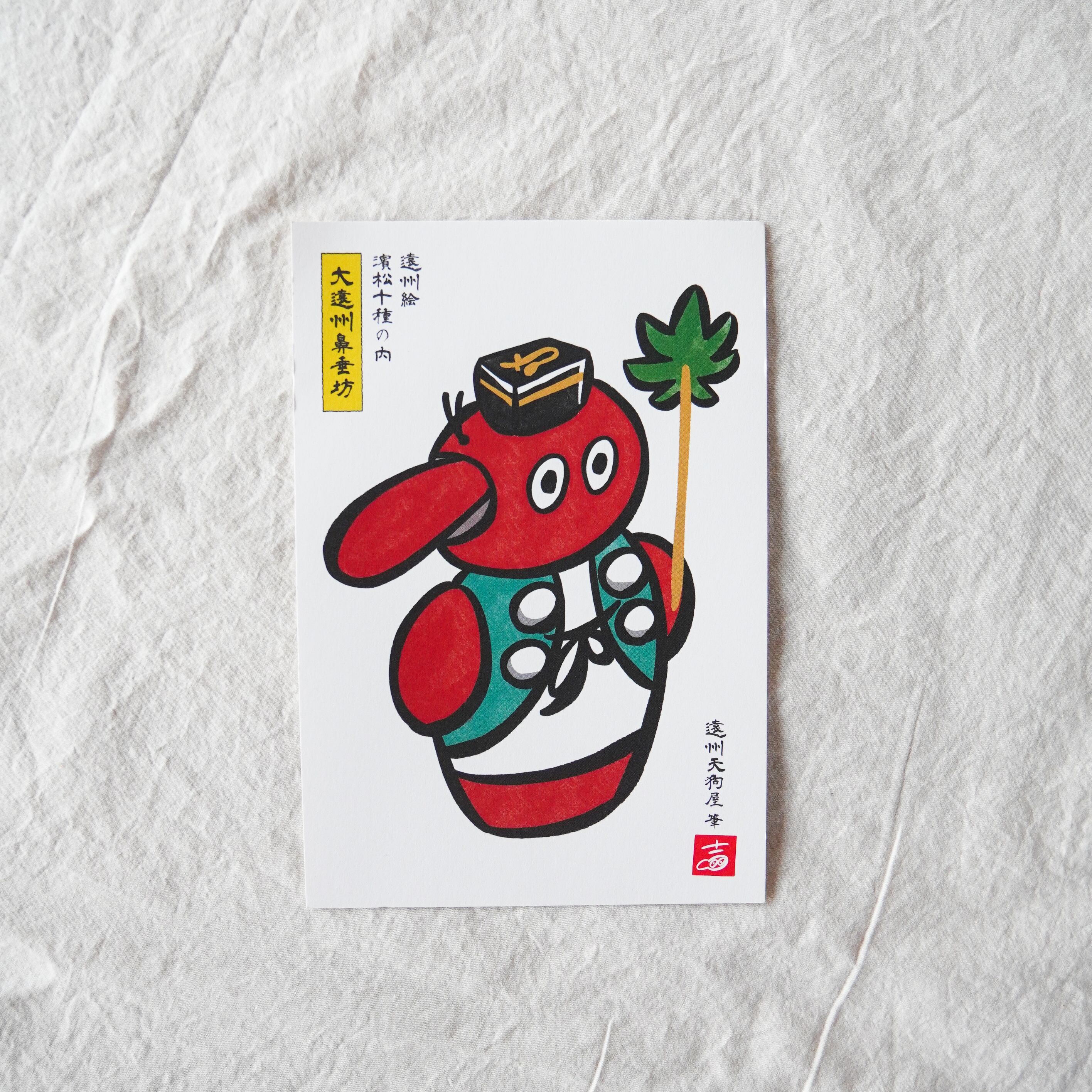 東海道の宿場町でお土産や護符として愛される静岡遠州の民画「遠州絵」より濱松十種のポストカードセットです。