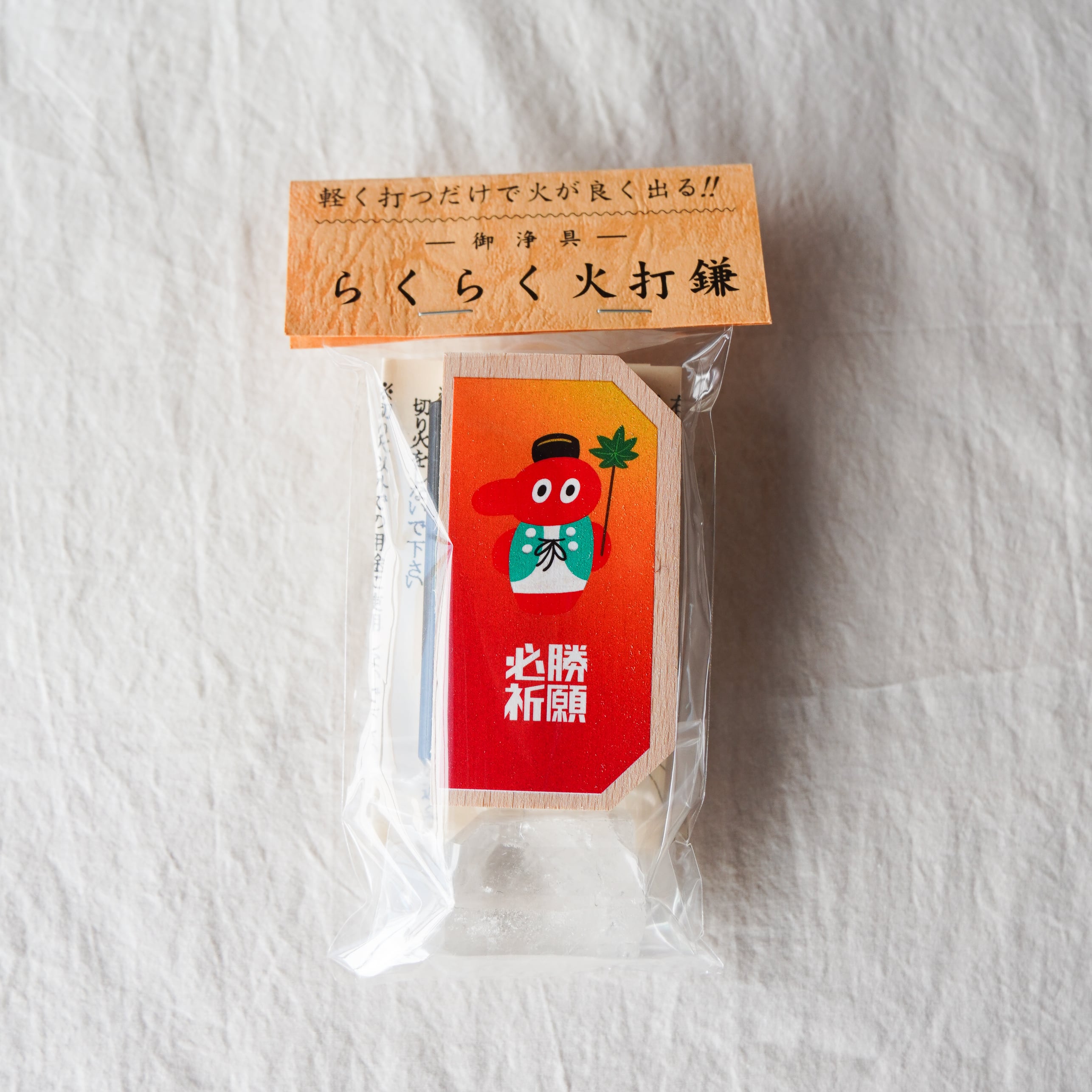 こちらのセットは直ぐに使用できるように、らくらく火打鎌に火打石として水晶をつけたセットです。