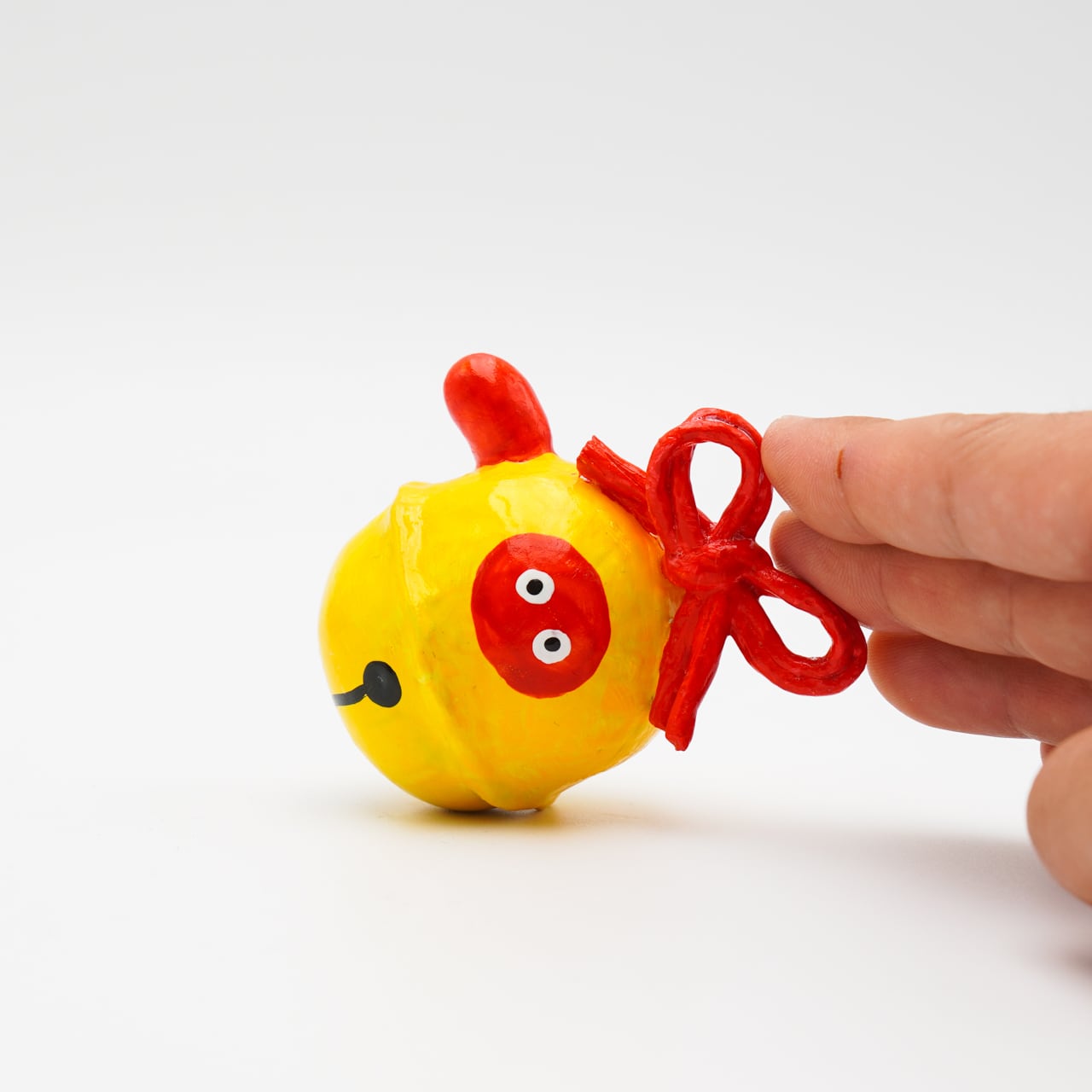 遠州の福寄せ天狗「てんぐちゃん(遠州鼻垂坊)」が、福鈴に変身した起き上がりの縁起物です。クリスマスらしくベルに変身しようと思ってたみたいですなので、ベルっぽく真っ赤なリボンをあしらいました◎ 少しだけ福の音が聴こえます♪