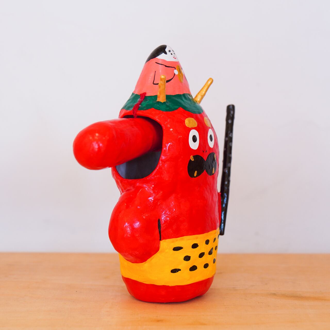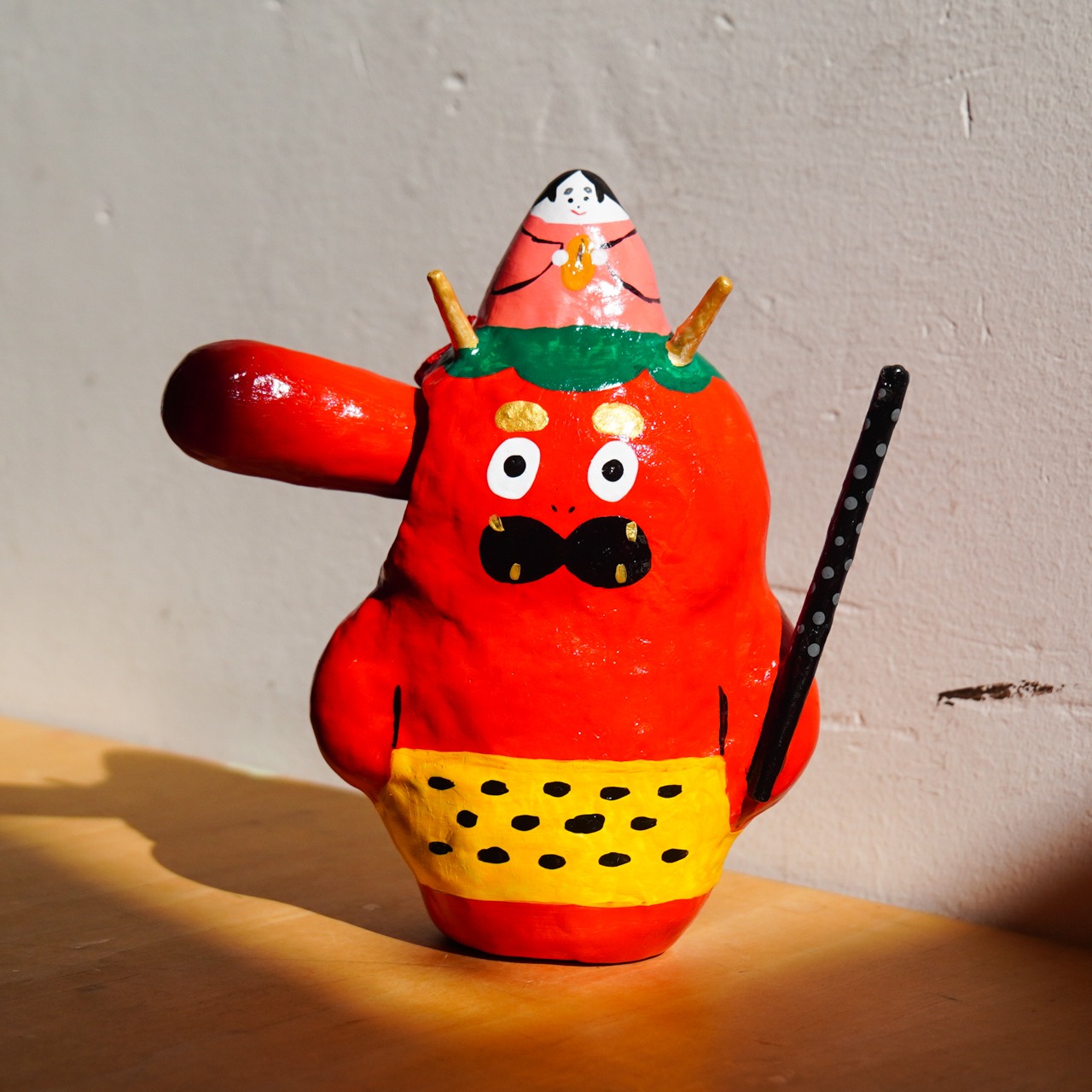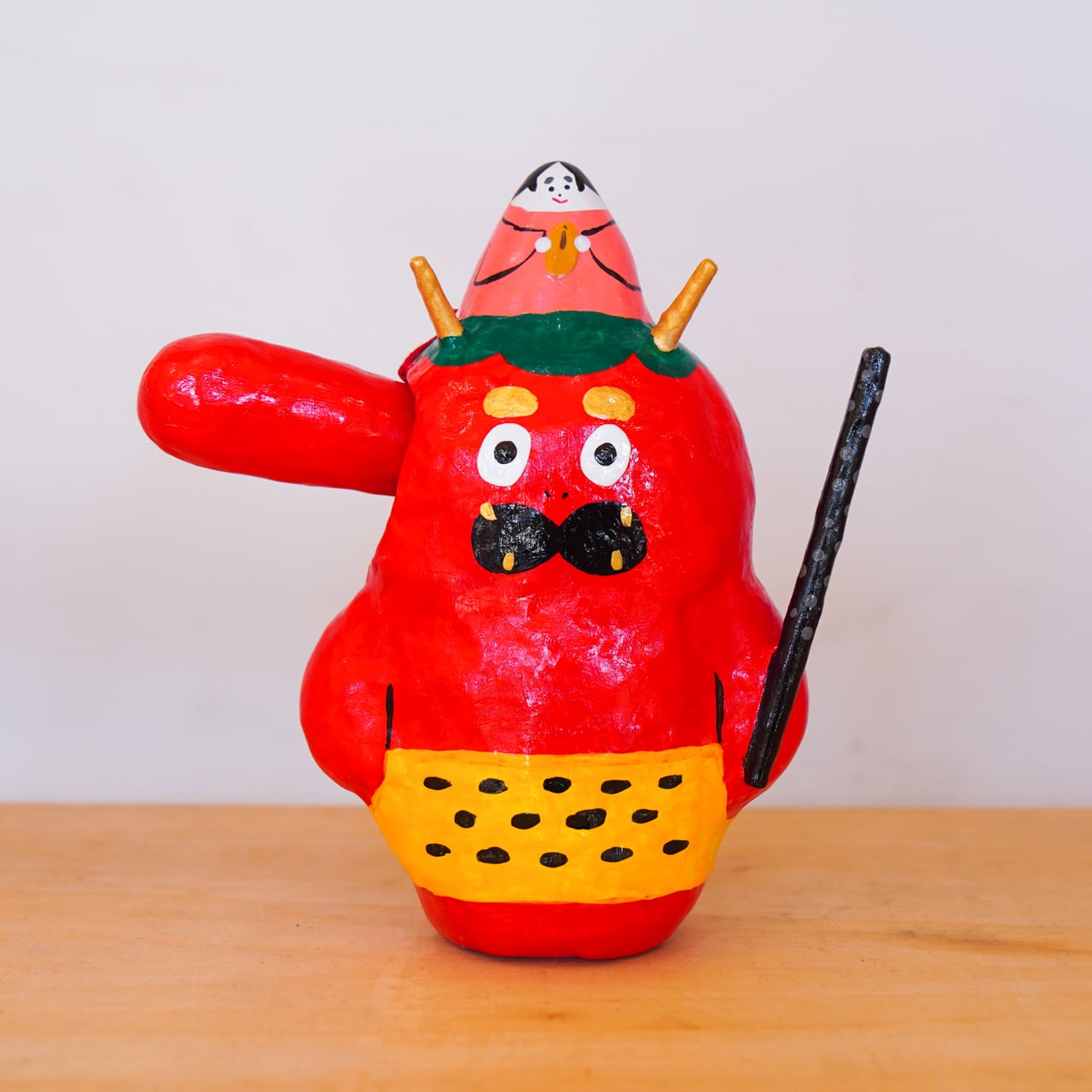 鼻ゆれ天狗張子 (中) 〜福のせ鬼天狗〜|高さ約16cm