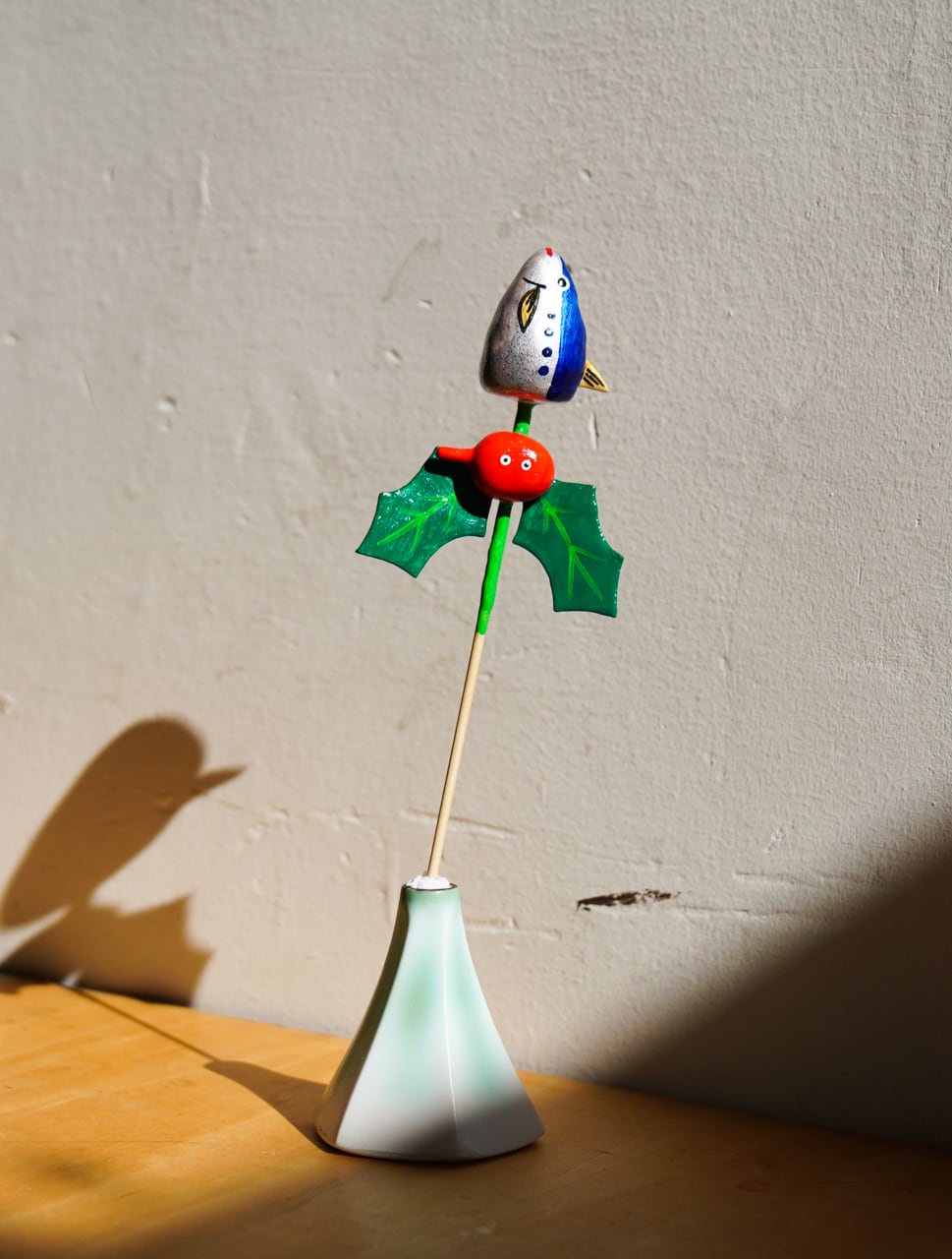 手びねりで作った鰯(いわし)と天狗に、柊(ひいらぎ)をあしらいました。